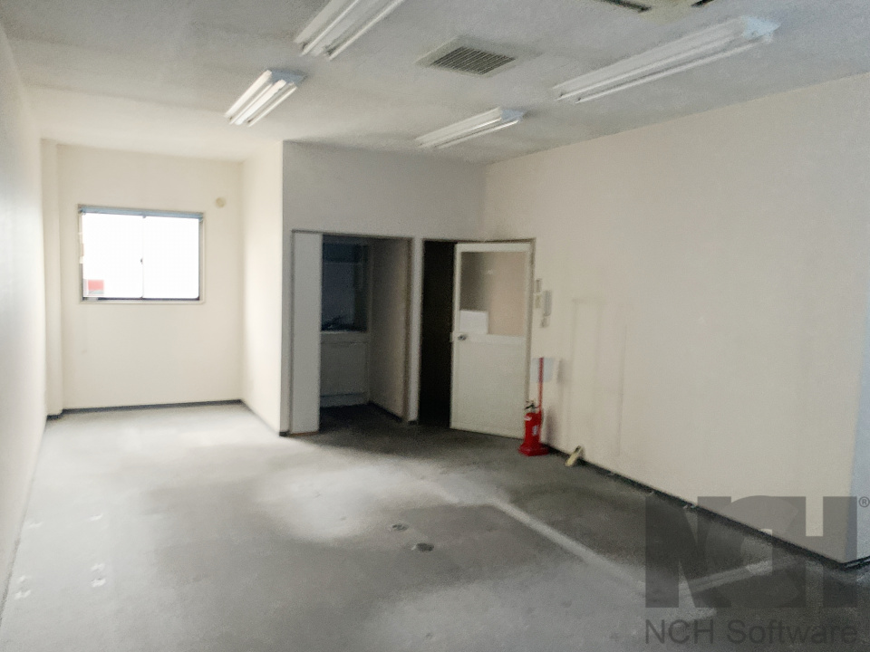 - 1F:電動シャッター 倉庫(スケルトン) 2F:事務所内装 ミニキッチン トイレ