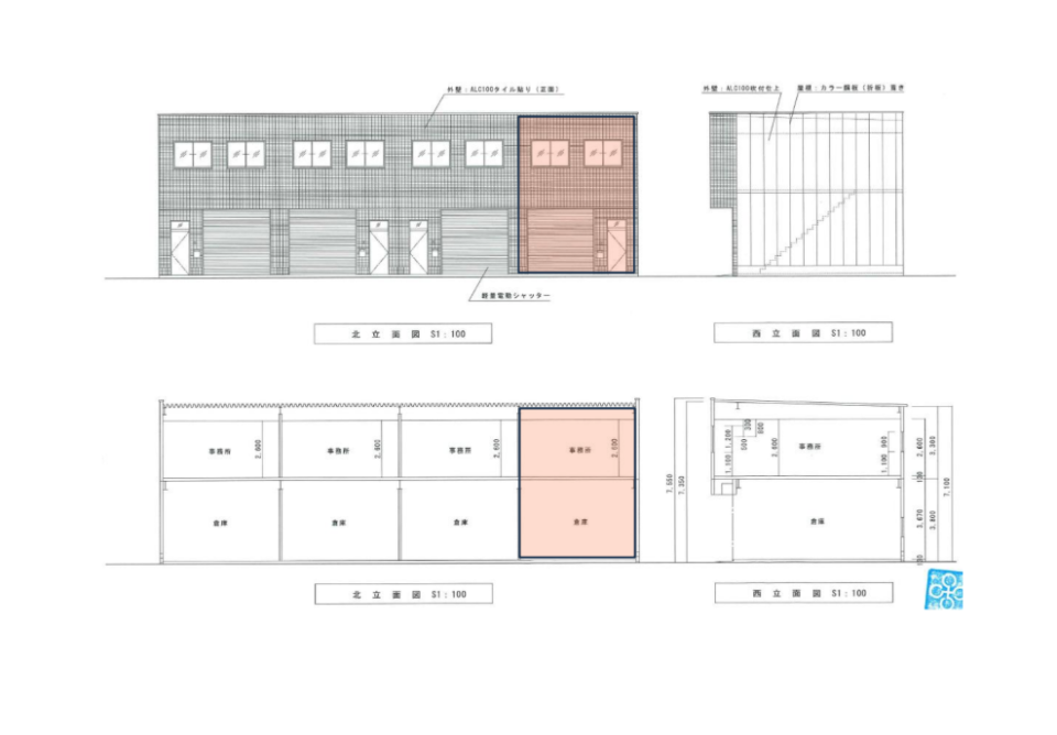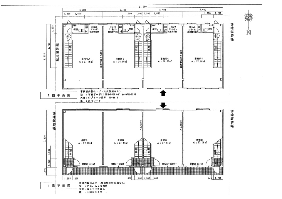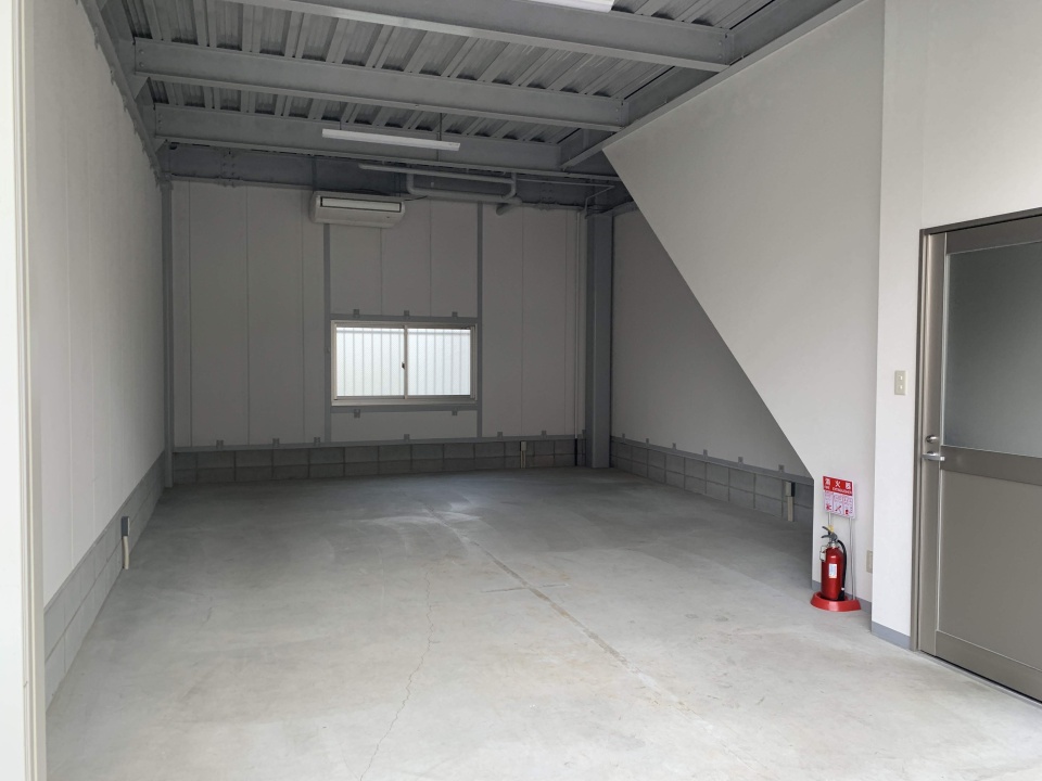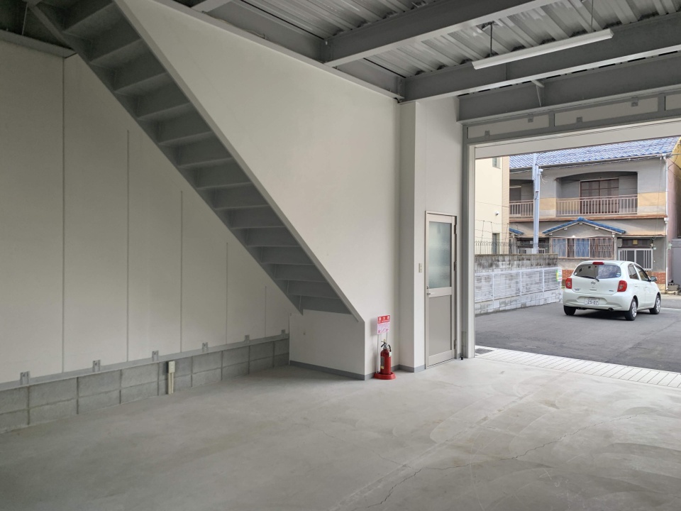 - 1F・・・電動シャッター インターホン 2F・・・事務所内装 ミニキッチン トイレ