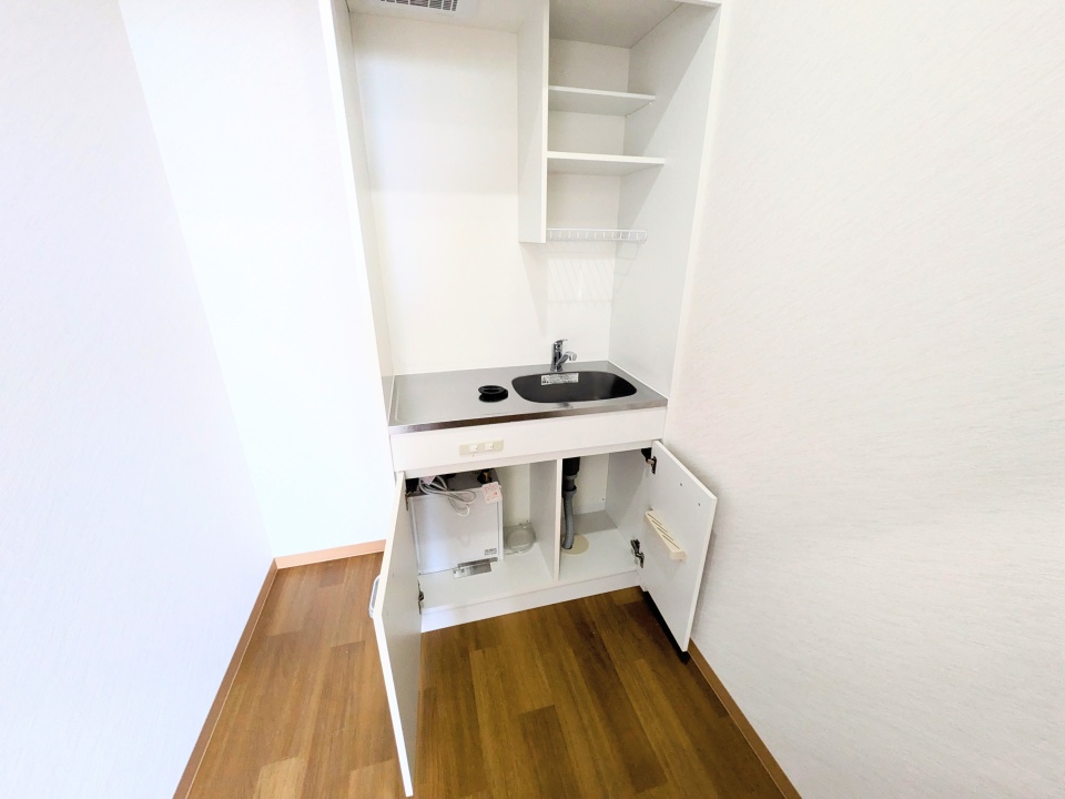 - 1F 電動シャッター、インターホン、トイレ、洗面 器 2F ミニキッチン、電気温水器、IH、トイレ(洗面 器付属