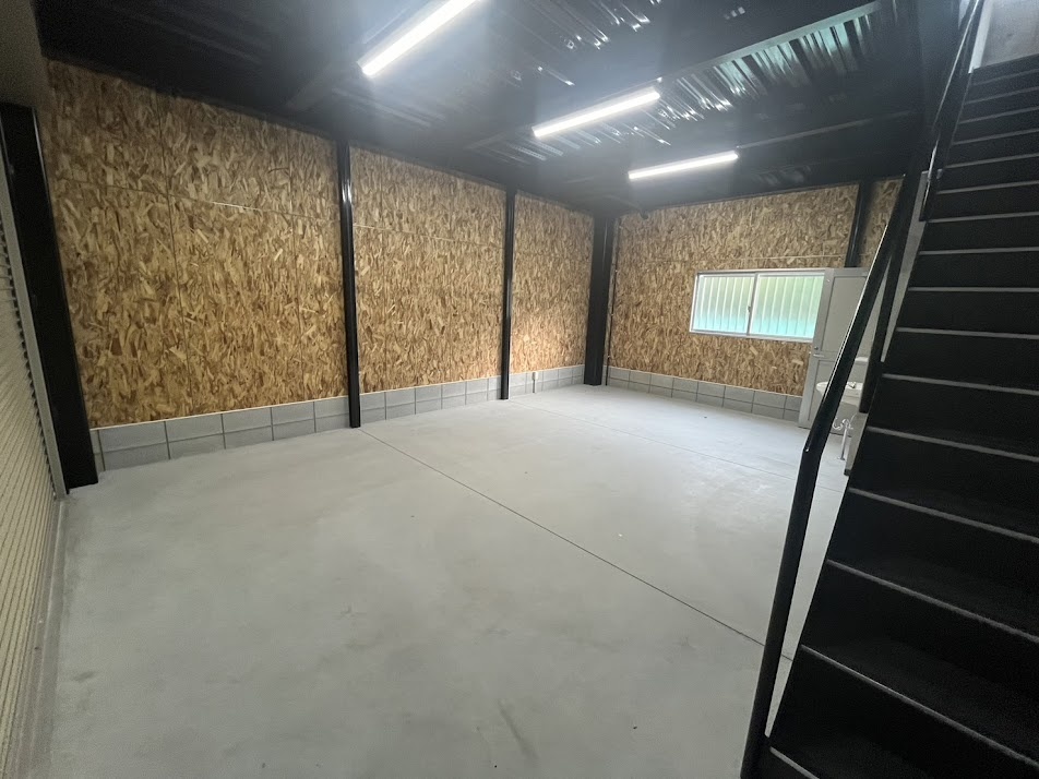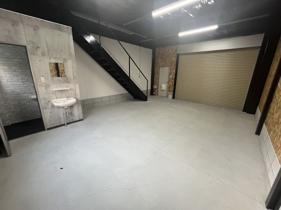 - 1F/トイレ・電動シャッター・(リモコン)・倉庫仕様 2F/ミニキッチン(シンクのみ)・事務所内装