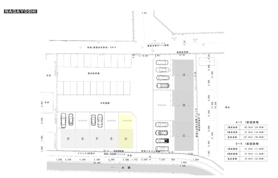- 前面道路幅員 7.5m 道路間口 6.84m