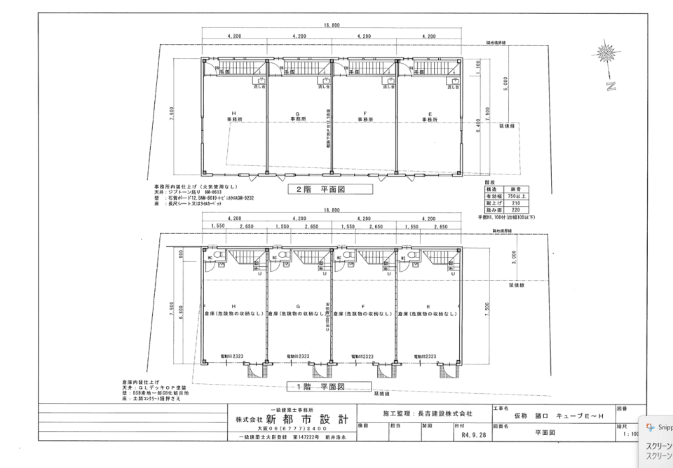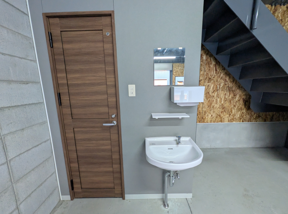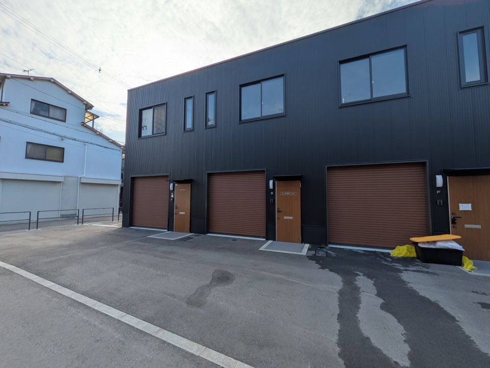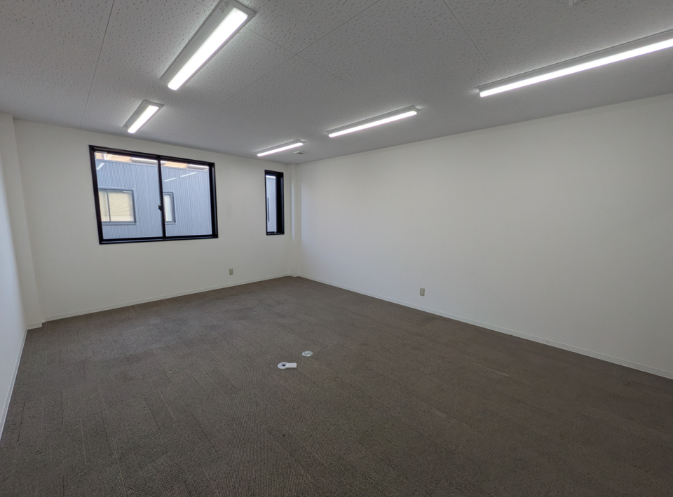 - 1F:電動シャッター(リモコン付)、洗面、トイレ 2F:事務所内装