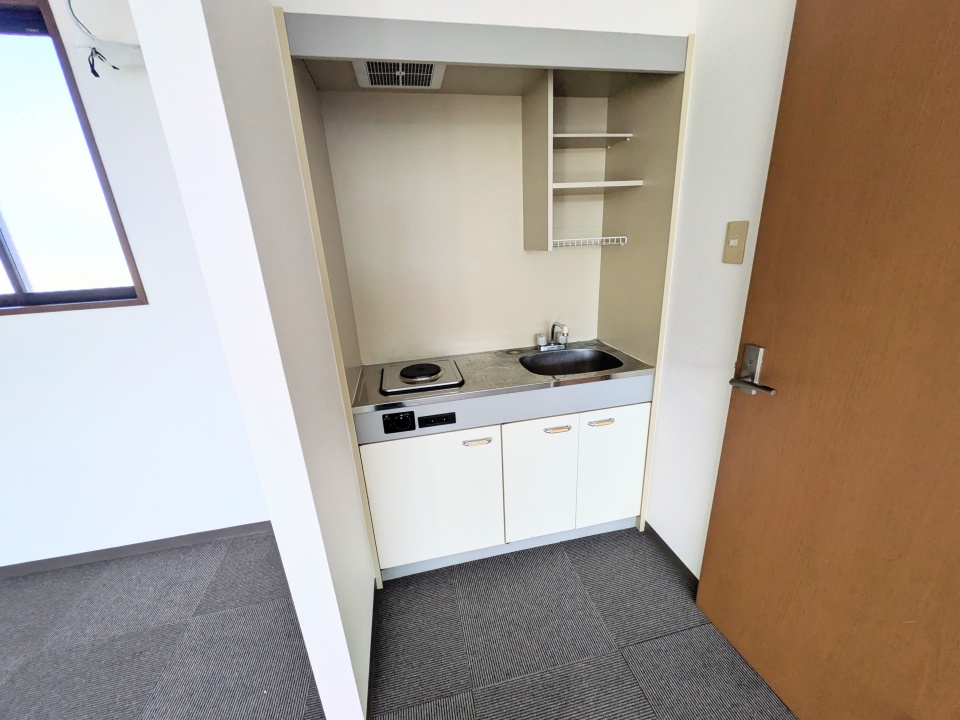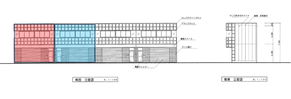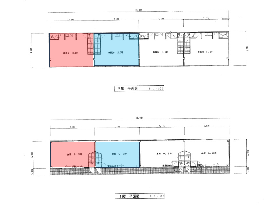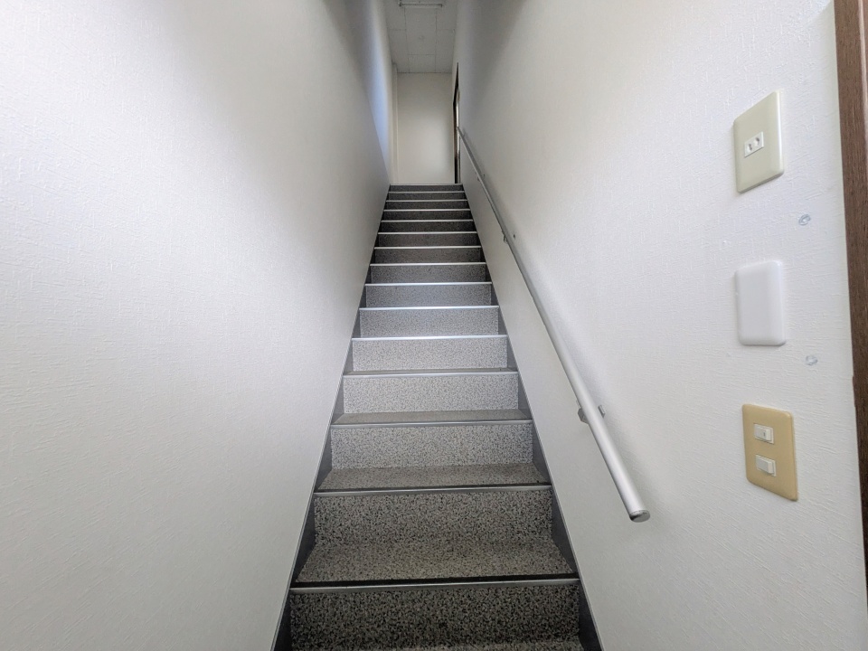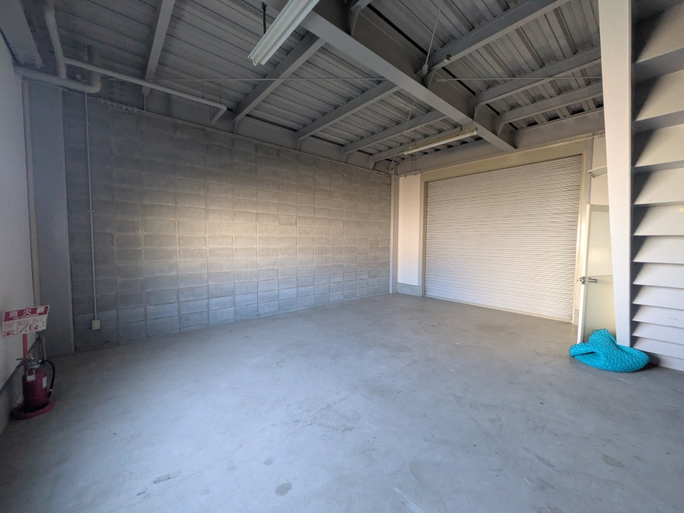 - 1階 電動シャッター インターホン ポスト 2階 事務所内装 トイレ ミニキッチン 電気温水器