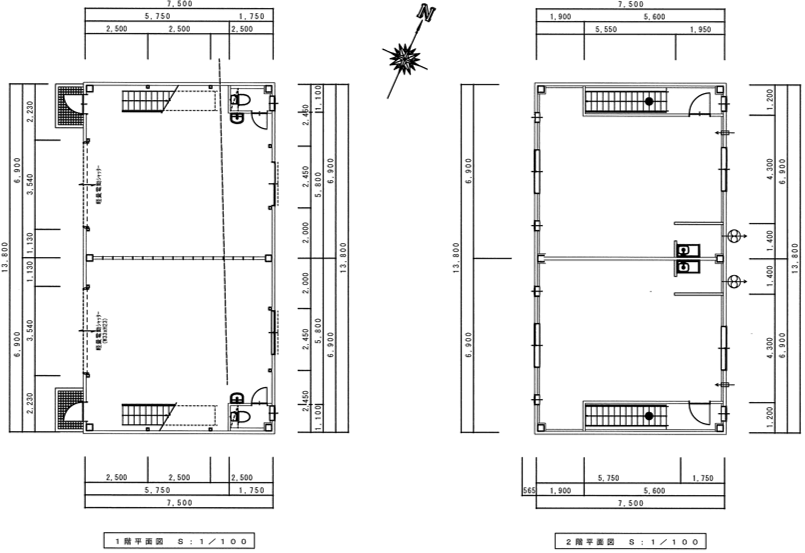 - 1F/照明、コンセント、電動シャッター、トイレ 2F/ミニキッチン、事務所内装