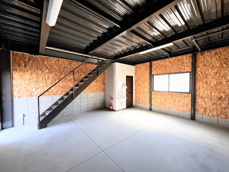 - 1F:電動シャッター、トイレ 2F:ミニキッチン