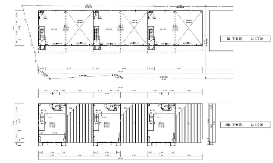 - 1F/電動シャッター・洗面・トイレ・インターホン 2F/事務所内装・トイレ